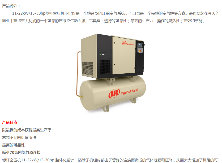 英格索蘭螺桿式空壓機(jī) R系列11-22KW
