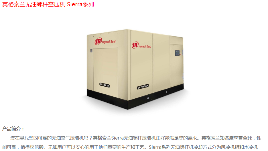 英格索蘭無(wú)油螺桿空壓機(jī)sierra系列